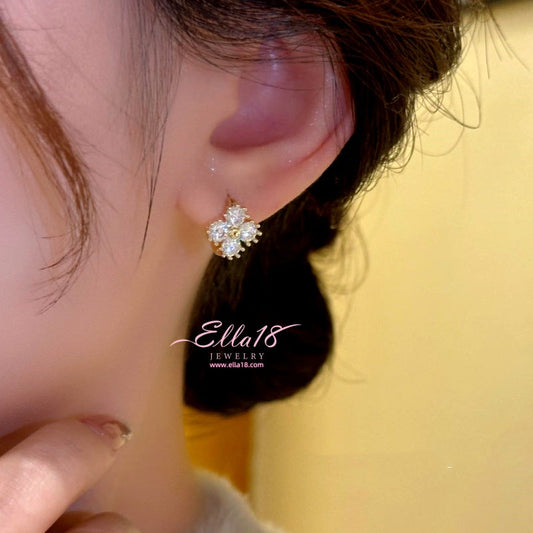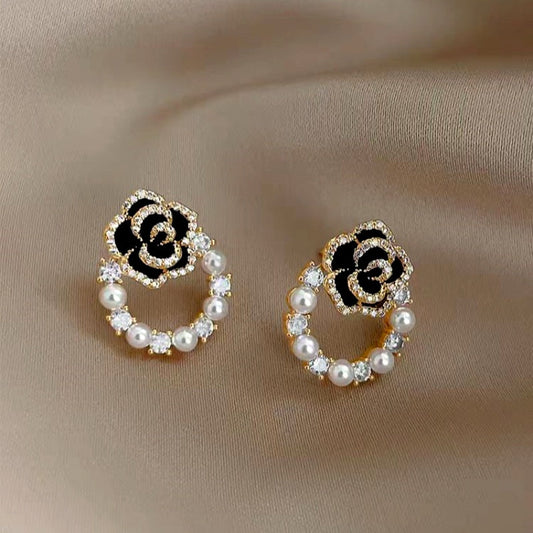 14K Gold-Plated French Camellia Pearl Zircon Earrings