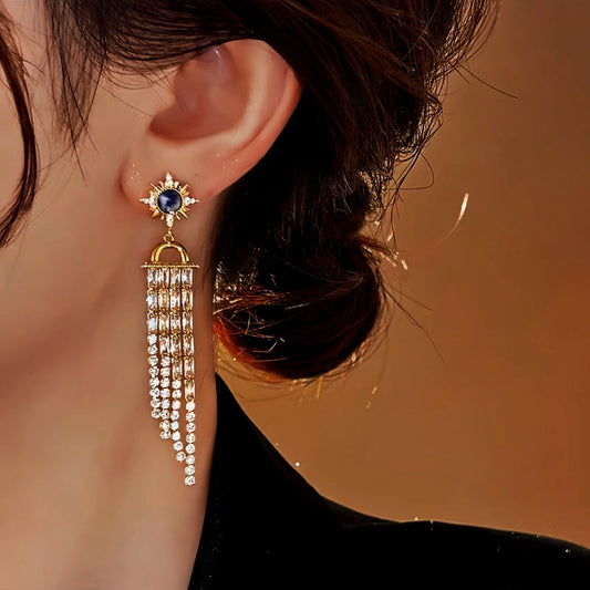 18K Gold-Plated Elegant Sunflower Zircon Tassel Earrings