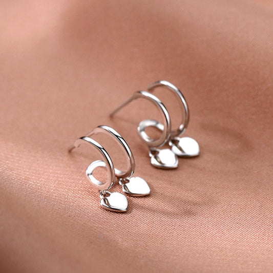 Sterling Silver Elegant Double-Layer Heart Earrings
