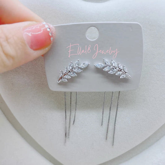 14K Gold-Plated Elegant Zircon Leaf Earrings