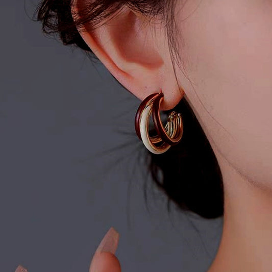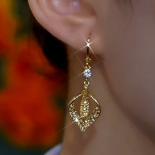 14K Gold-Plated Elegant Brown Diamond Geometric Earrings