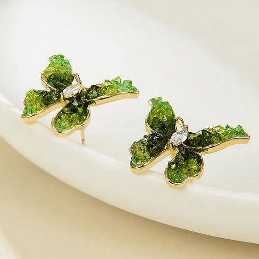 14K Gold-Plated Green Crystal Butterfly Stud Earrings