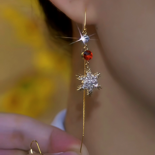 Sterling Silver Snowflake Star Threader Tassel Earrings