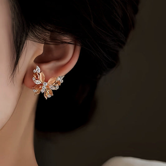 18K Gold-Plated Zircon Cat's Eye Stone Butterfly Earrings