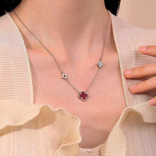 Sterling Silver Four-Leaf Clover Agate Necklaces