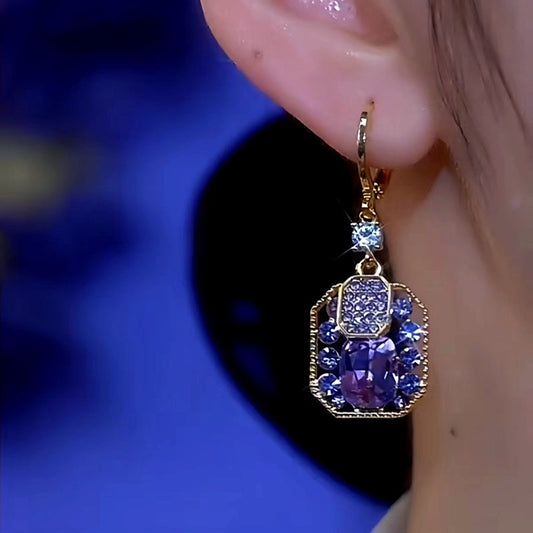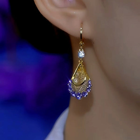14K Gold-Plated Purple Diamond Mesh Water Drop Earrings