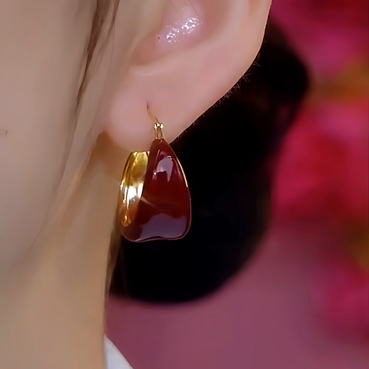 14K Gold-Plated Exquisite Zircon Brown Diamond French Earrings