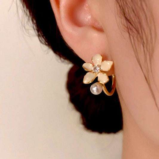 14K Gold-Plated Elegant Flower Pearl Earrings