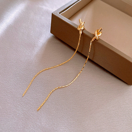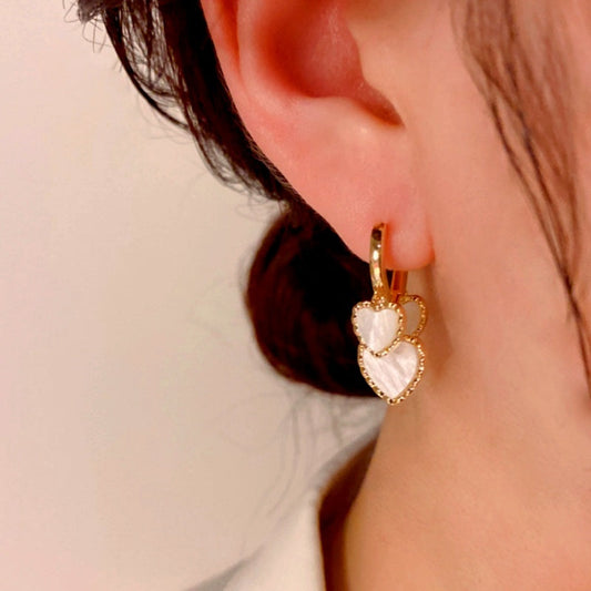 14K Gold-Plated Elegant Double-Heart Threader Tassel Earrings