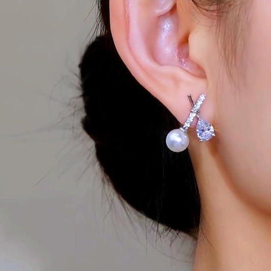 14K Gold-Plated Elegant Zircon Pearl Studs