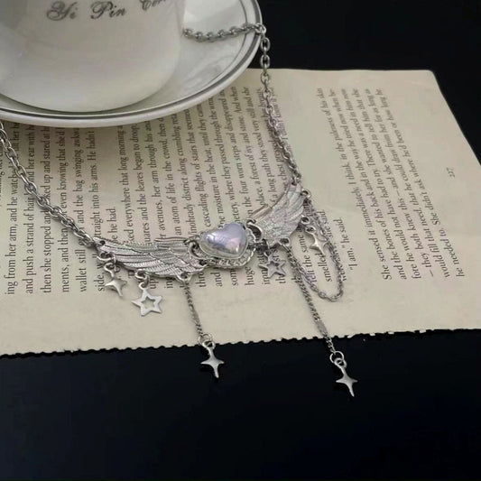 14K Gold-Plated Heart Wings And Star Tassel Necklaces