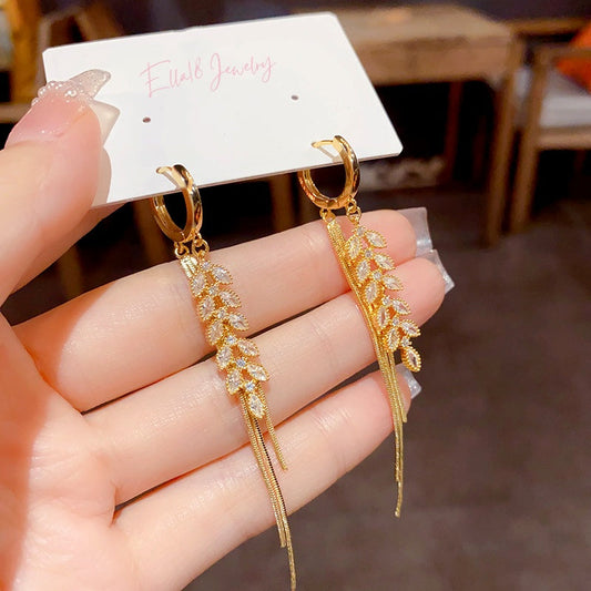 14K Gold-Plated Luxury Zircon Wheat Ear Buckle Earrings