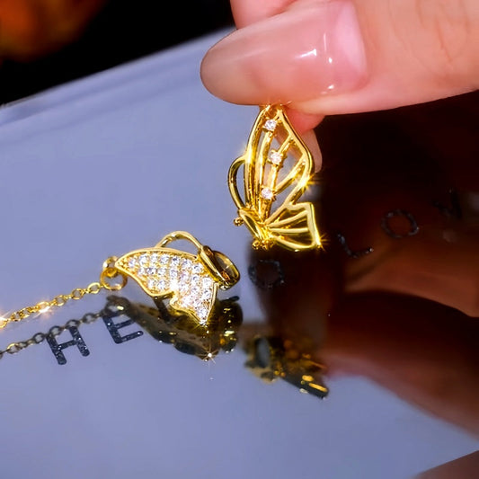 14K Gold-Plated Magnetic Diamond Butterfly Necklaces