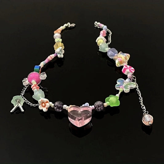 14K Gold-Plated Pink Heart Colorful Beaded Necklaces