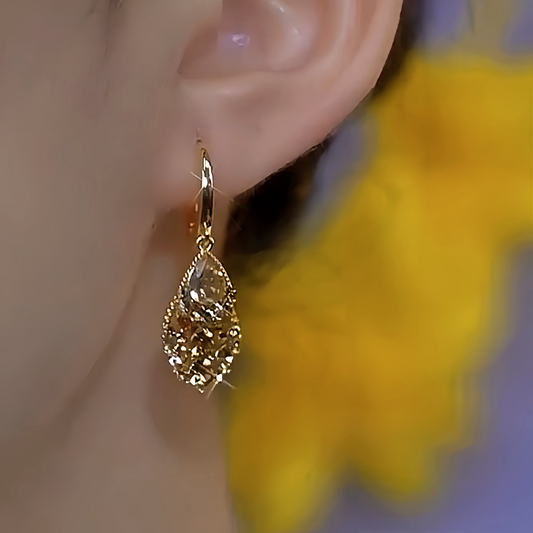14K Gold-Plated Luxury Zircon Yellow Crystal Earrings