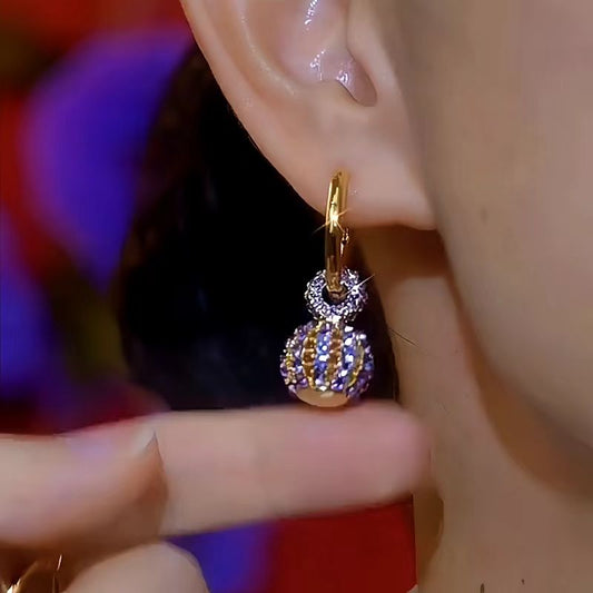 14K Gold-Plated Luxury Purple Crystal Ball Earrings