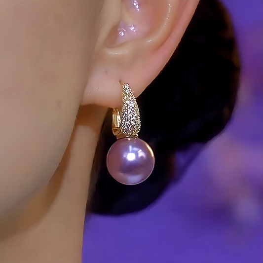 14K Gold-Plated Luxury Zircon Purple Pearl Earrings