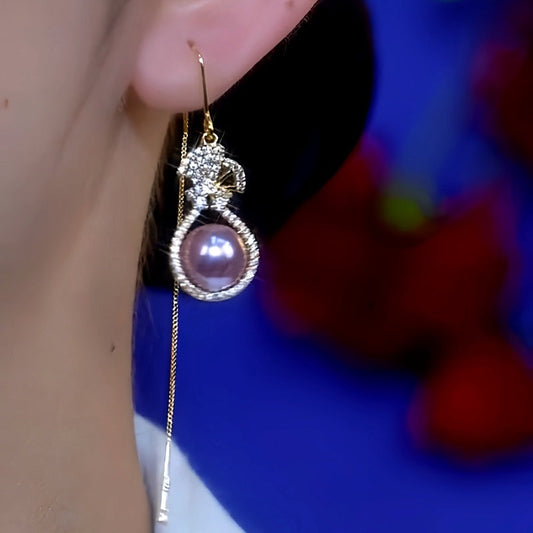 14K Gold-Plated Purple Pearl Threader Earrings