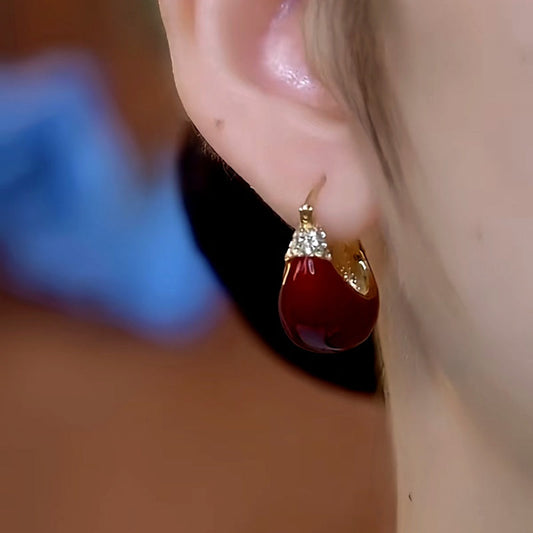 14K Gold-Plated Red Oil-Dropping Diamond Earrings