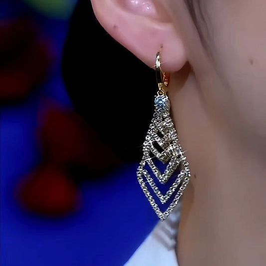 14K Gold-Plated Retro Geometric Diamond Earrings