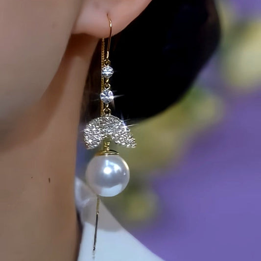 14K Gold-Plated Diamond Pearl Tassel Earrings