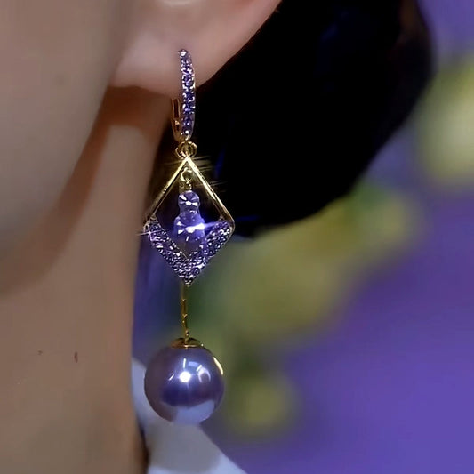 14K Gold-Plated Purple Diamond Pearl Earrings