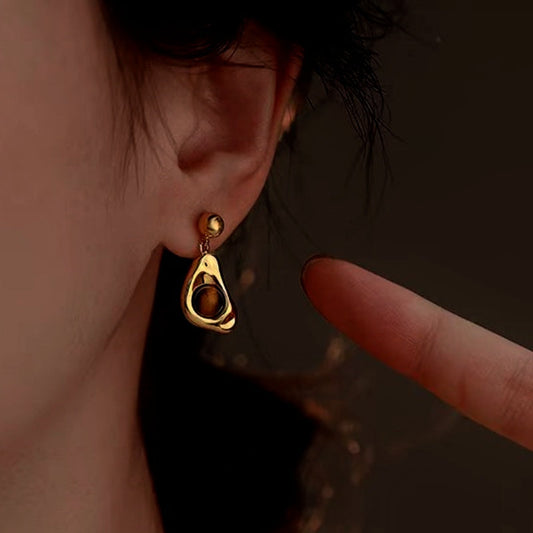 14K Gold-Plated Cat's Eye Brown Diaomd Jade Leaves Earrings