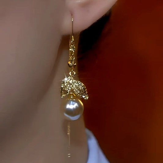 14K Gold-Plated Elegant Water Drop Pearl Earrings