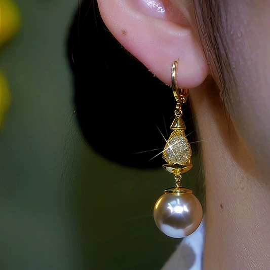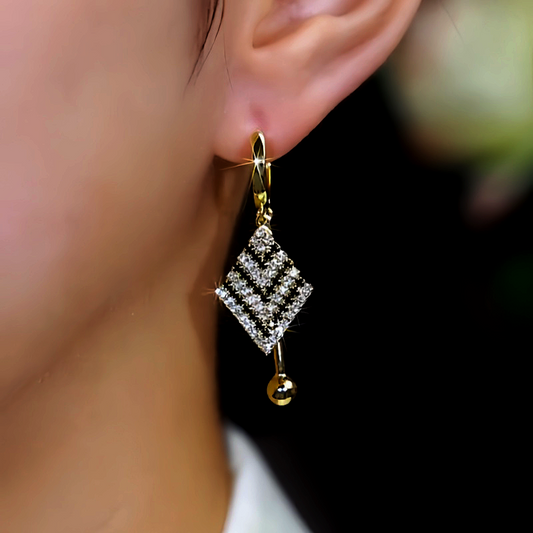 14K Gold-Plated Double-Layer Oil Drop Diamond And Crystal Tassel Earrings