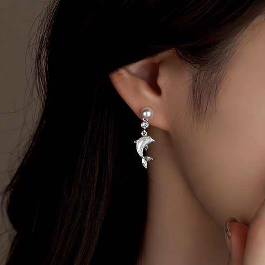 14K Gold-Plated Moonstone Dolphin Pearl Earrings And Necklace Set