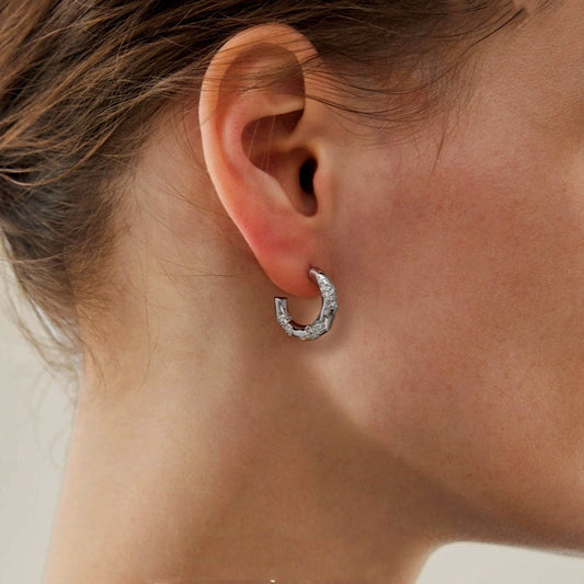 18K Gold-Plated Diamond-Studded C-Shaped Earrings