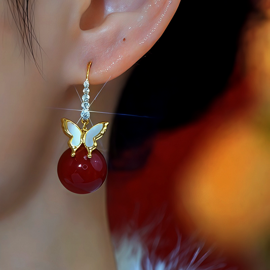 14K Gold-Plated Zircon Diamond Butterfly Bead Ear Hooks