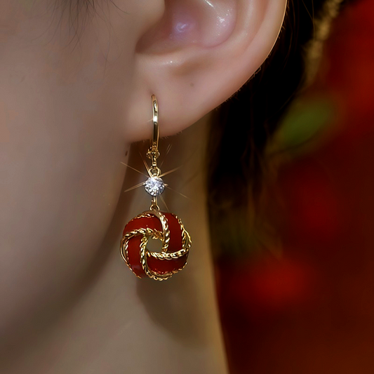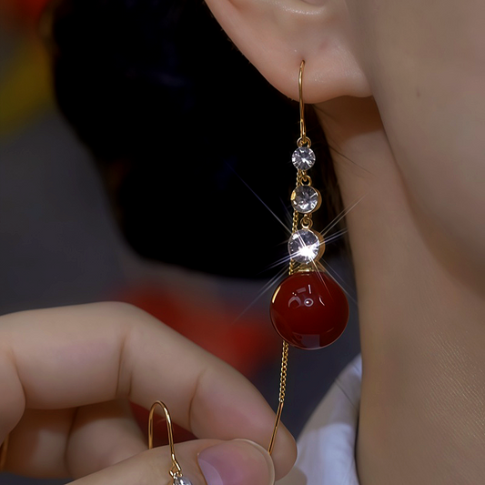 14K Gold-Plated Zircon Red Ball Earrings