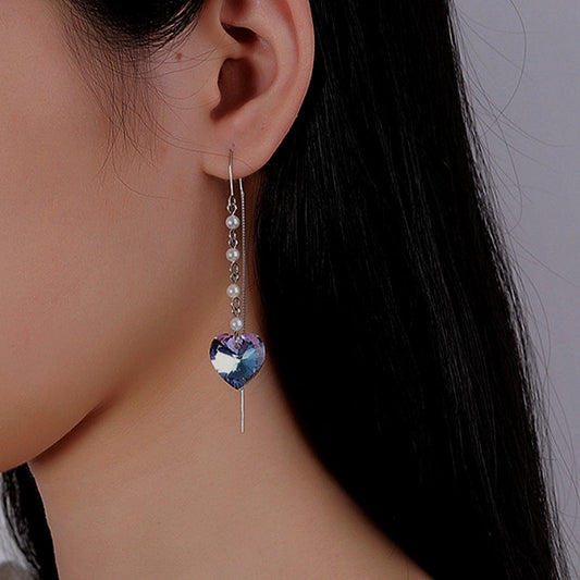 Sterling Silver Heart Pearl Tassel Threader Earrings