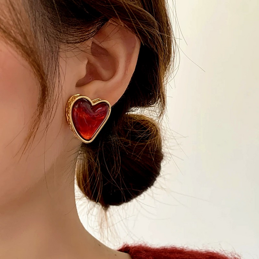 14K Gold-Plated Luxury Red Heart Stud Earrings