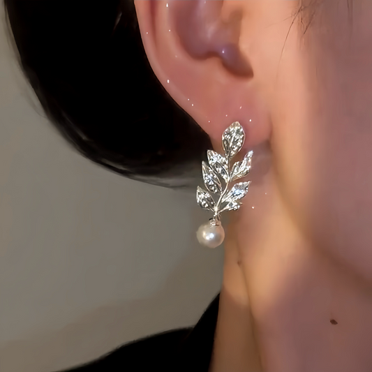 14K Gold-Plated Zircon Leaf Bead Earrings