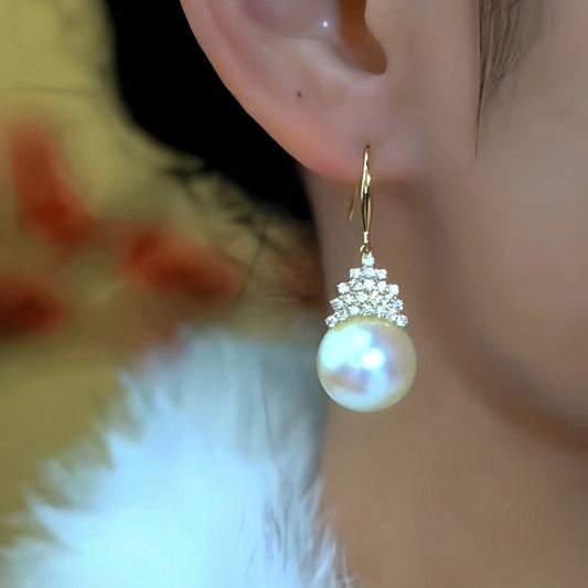 14K Gold-Plated Luxury Zircon Pearl Ear Hooks
