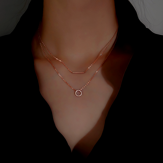 Sterling Silver Diamond-Studded Double-Layer Necklaces