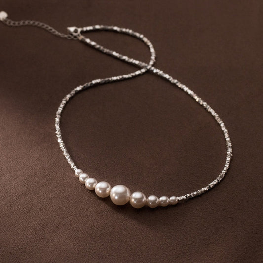 Sterling Silver Camellia Double Layer Pearl Necklaces