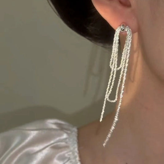 14K Gold-Plated Broken Silver Long Tassel Earrings