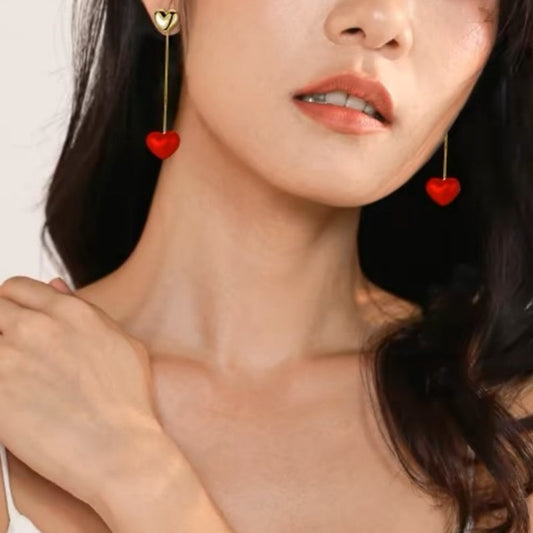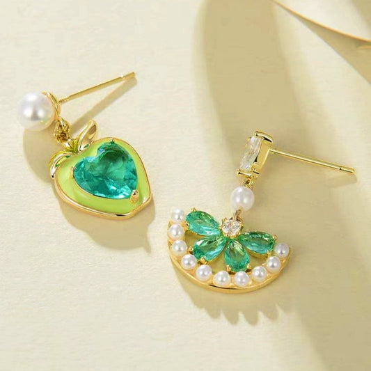 18K Gold-plated Zircon Green Apple Heart Pearl Earrings