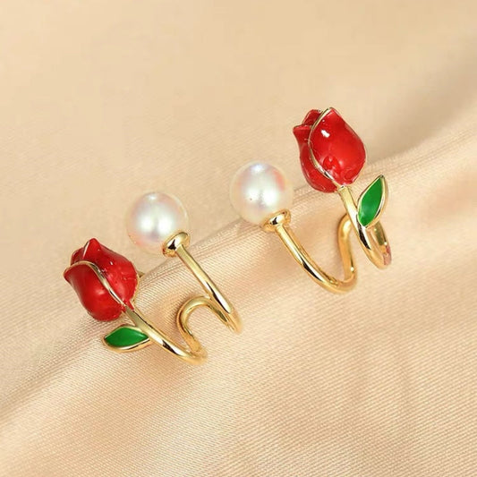 14K Gold-plated Elegant Tulip Flower Pearl Studs