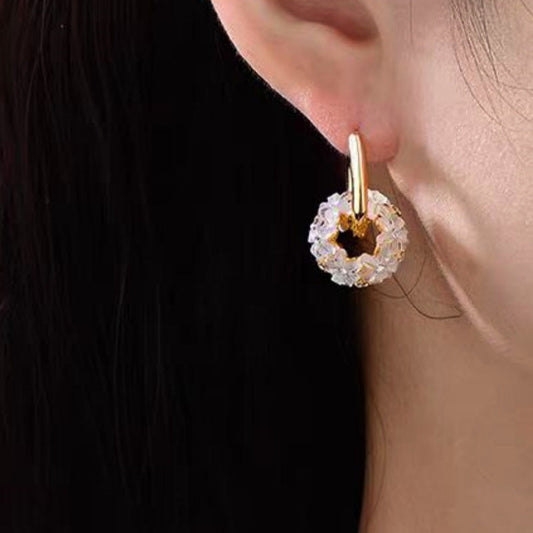 14K Gold-Plated Elegant Zircon Flower Earrings