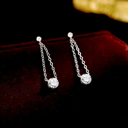 Sterling Silver Elegant Diamond Ball Tassel Earrings