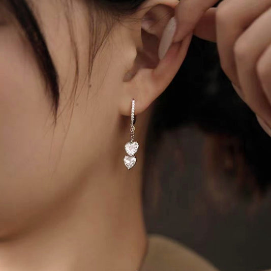 Sterling Silver Pearl Zircon Heart-Design Earrings