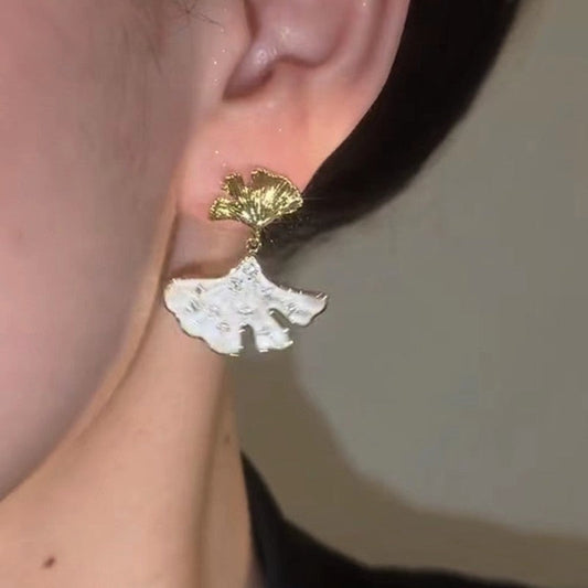 14K Gold-Plated Hollow Leaf Tassel Threader Earrings