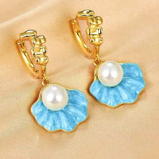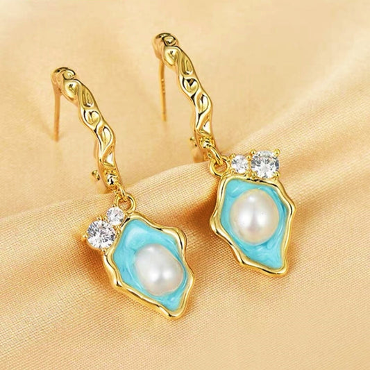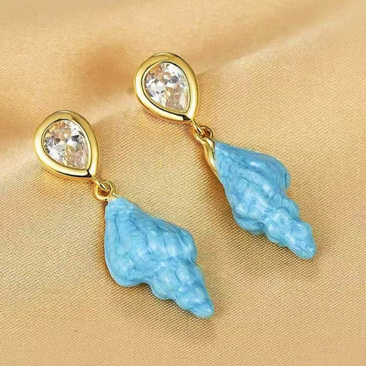 14K Gold-Plated Zircon Blue Ocean Conch Earrings
