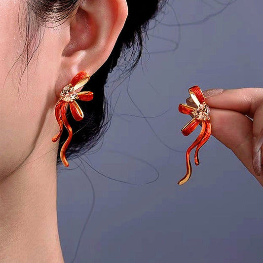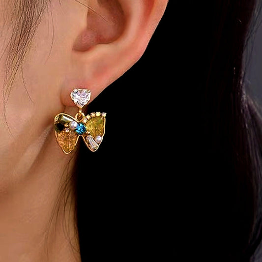 14K Gold-Plated Colorful Crystal Pearl Bow Earrings