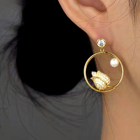 14K Gold-plated Elegant Fishtail Bead Earrings