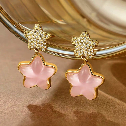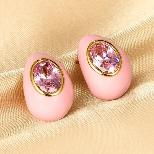 14K Gold-Plated Zircon Pink Water Drop Enamel Earrings